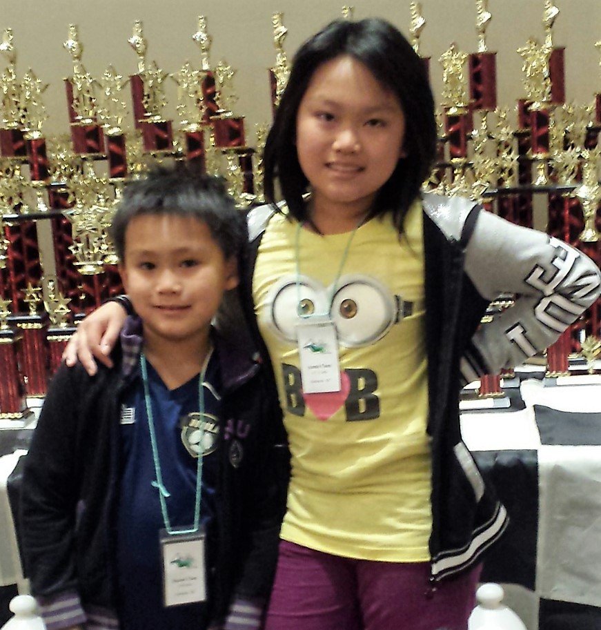 Annie Chen et son frère Daniel ont respectivement joué dans les sections de moins de 12 ans (U12) et moins de 8 ans (U8) tandis que Joyce Deng (ci-contre debout 2è de gauche) et son frère Henry ont tous deux joué dans la section U8. Le championnat était un tournoi de 7 rondes.