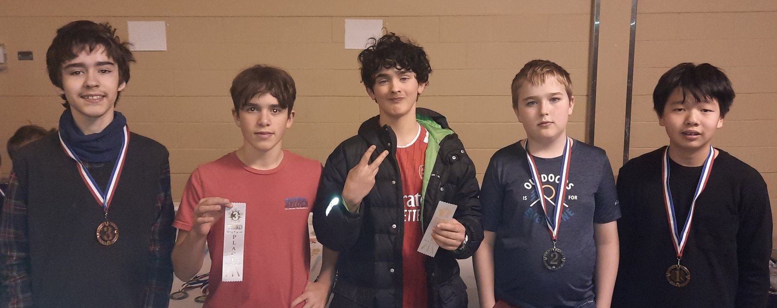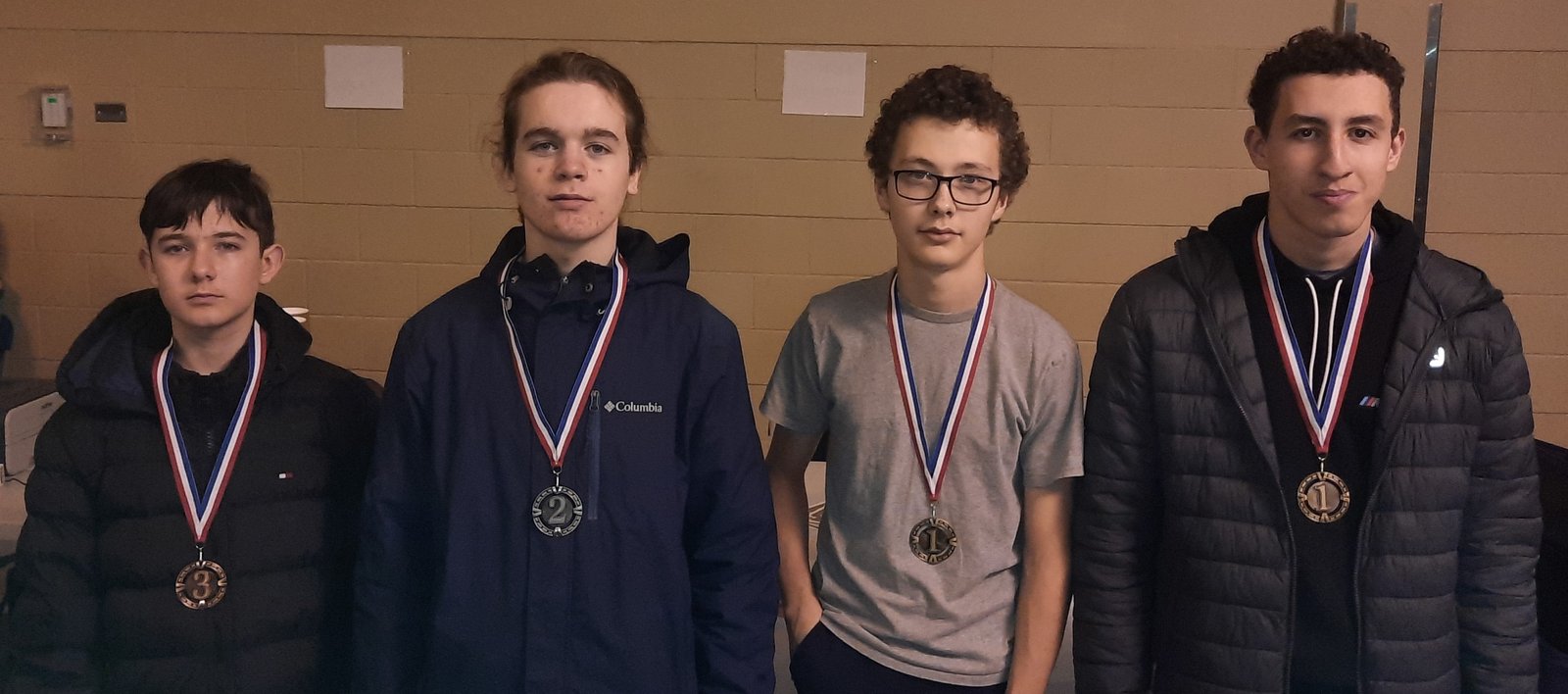 Jaden Li s’est emparé de la médaille d’or avec un score parfait de 4 pts, devant 4 joueurs qui ont terminé ex aequo avec 3 pts, soit Olivier Lalonde d’Euclide-Lanthier (argent), Samuel Filion (bronze), et deux étudiants du collège St-Alexandre, Sacha Perrault et Martin Kokalari.