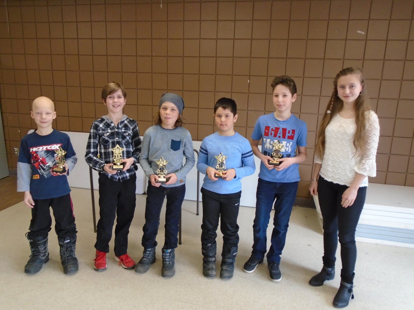 Les 21 représentants des écoles de l’Outaouais en ont vu de toutes les couleurs contre Svitlana. Mais ils se sont bien battus et l’ont forcé à jouer près de mille coups pendant plus de 3 heures. Cependant au final la logique a été respectée et Svitlana l’a emporté avec un score de 20.5 sur 21. Seul notre champion cadet Étienne Latreille a évité de mordre la poussière et a obligé la championne à concéder une nulle. Ont été invités à participer à cet événement les meilleurs joueurs de la région, ainsi que les champions des 5 clubs de la LSE où ont été organisés des championnats de leur école). Dans la photo de gauche à droite, on reconnaît ces derniers avec leurs trophées: