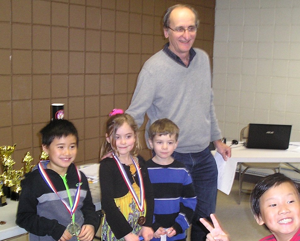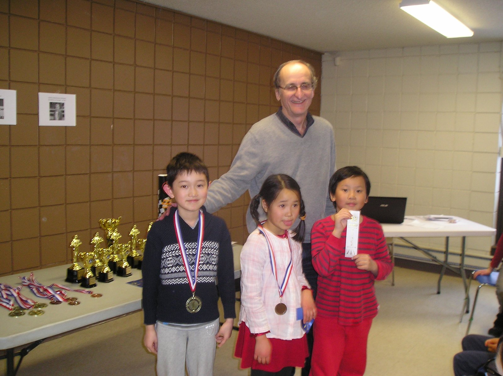 U10 : 1er Richie Zhao (qu’on aperçcoit à gauche peut être fier de sa médaille) avec une fiche parfaite de 4 victoires; 2ème Joyce Deng; 3ème Jerry Xu.