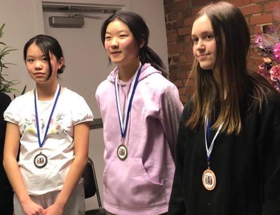 le 19 mars dernier Anaïs Fiset (à droite sur la photo) a fini ex aequo à trois en 1re position avec 4/5 pts. Après le départage avec des parties Armageddon, elle s’est mérité la médaille de bronze.